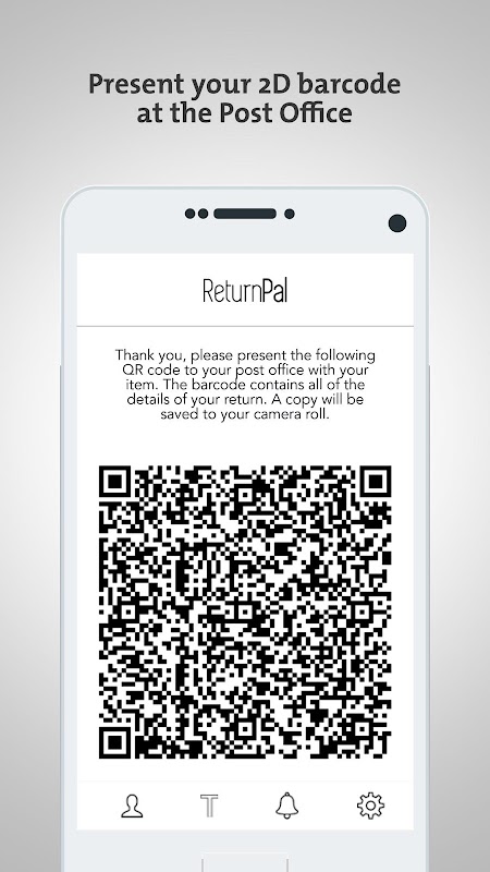 B. Post Office drop off – You simply bring the item to the Post Office and present the 2D barcode code generated in the app to the Post Office clerk when dropping off their package.
