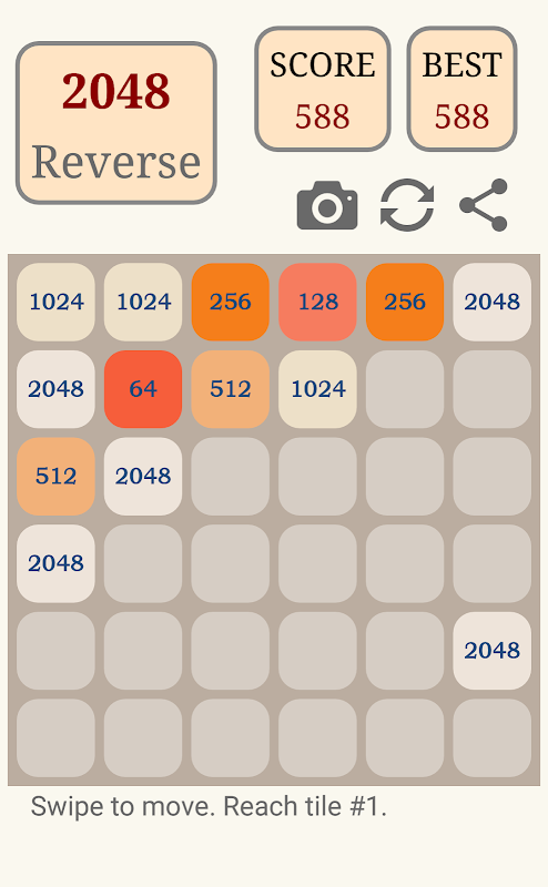 Start playing the "Reverse 2048", compete with your friends to see who can make the best score.