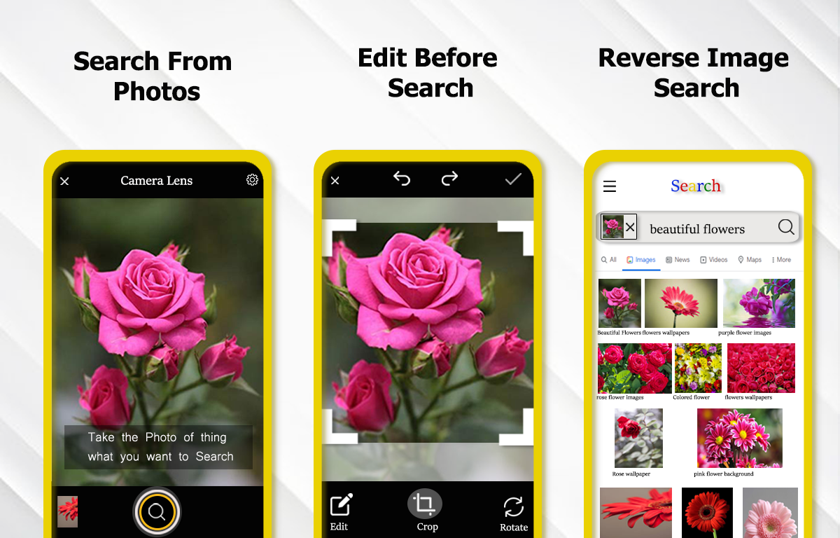 गैलरी में बहुत सारी अज्ञात तस्वीरें? इस मल्टी इंजन रिवर्स इमेज सर्च ऐप में अपनी छवियों के विरुद्ध संबंधित चित्र खोजें। मल्टी रिवर्स इमेज सर्च ऐप आपको परिणाम खोजने से पहले छवियों को क्रॉप और रोटेट करने की पेशकश करता है, छवियों को क्रॉप करके आपको सटीक परिणाम मिल सकते हैं।