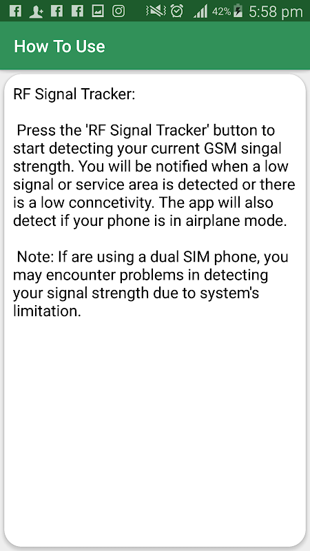 Note: If are using a dual SIM phone, you may encounter problems in detecting your signal strength due to system's limitation.