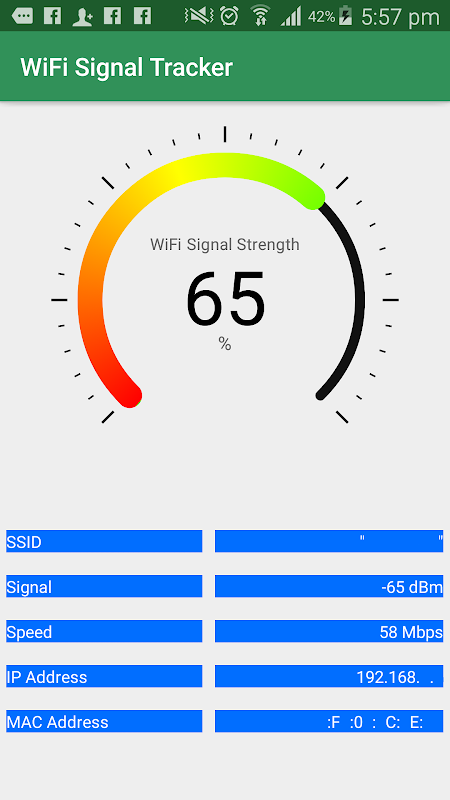 RF Signal Tracker RF Detector has a simple tool that allows you to view your current WiFi connection signal strength. Its useful in finding good areas of WiFi connectivity in your WiFi network.