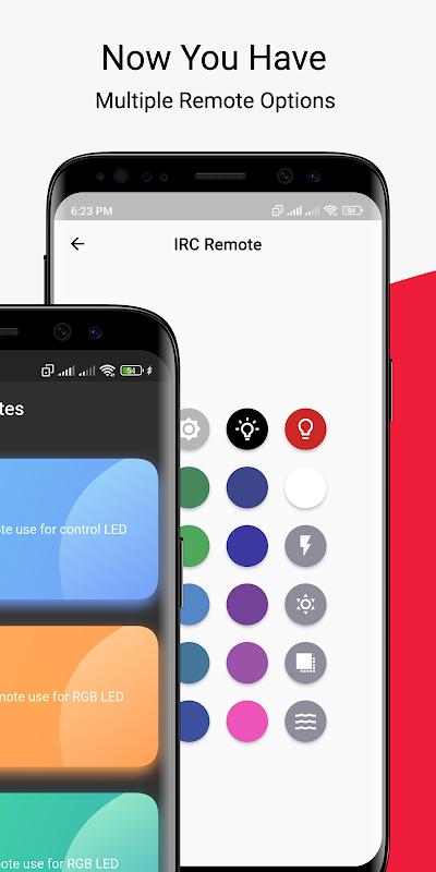 यह ऐप सिल्वेनिया RGB रिमोट और IRC240S RGB रिमोट (24Keys) की तरह ऑटोमैटिक डार्क मोड लाइट मोड सपोर्ट के साथ काम करता है। यदि आप IR सेंसर के बारे में सुनिश्चित नहीं हैं तो दोनों रिमोट आज़माएं।