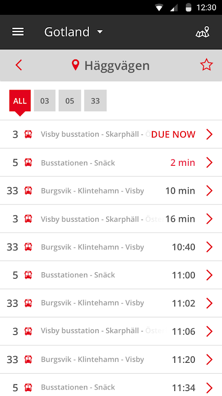 * Timetables - search for bus departures in Gotland.