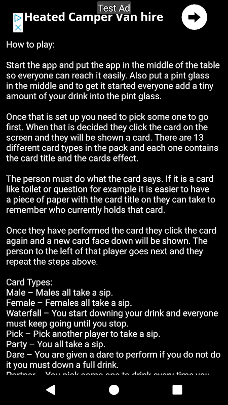 एप्लिकेशन में एक नियम अनुभाग होता है और सभी कार्डों के बारे में अधिक विस्तार से बताया जाता है और गेम कैसे खेलना है। उनके द्वारा स्वयं के कार्डों का वर्णन किया गया है ताकि आप कभी यह न भूलें कि एक कार्ड क्या करता है!