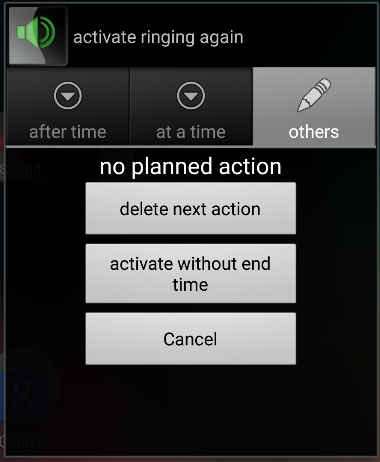 Es gibt die Möglichkeit eines kostenpflichtigen Premium Updates. Mit dieser kann beim umschalten des Klingelzustandes eine Zeit innerhalb der nächsten 24 Stunden eingestellt werden, nach welcher der Zustand wieder automatisch umgeschaltet wird. Das Widget zeigt dann die nächste Umschaltzeit an.