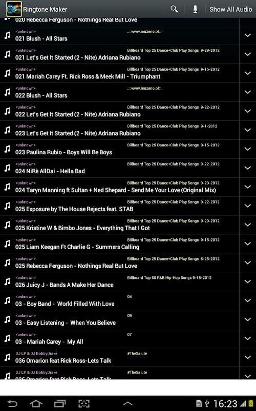रिंगटोन्स निर्माता अपने सभी ऑडियो फाइलों को पढ़ने और अपने संपादन के लिए जानकारी प्रदर्शित करता है.