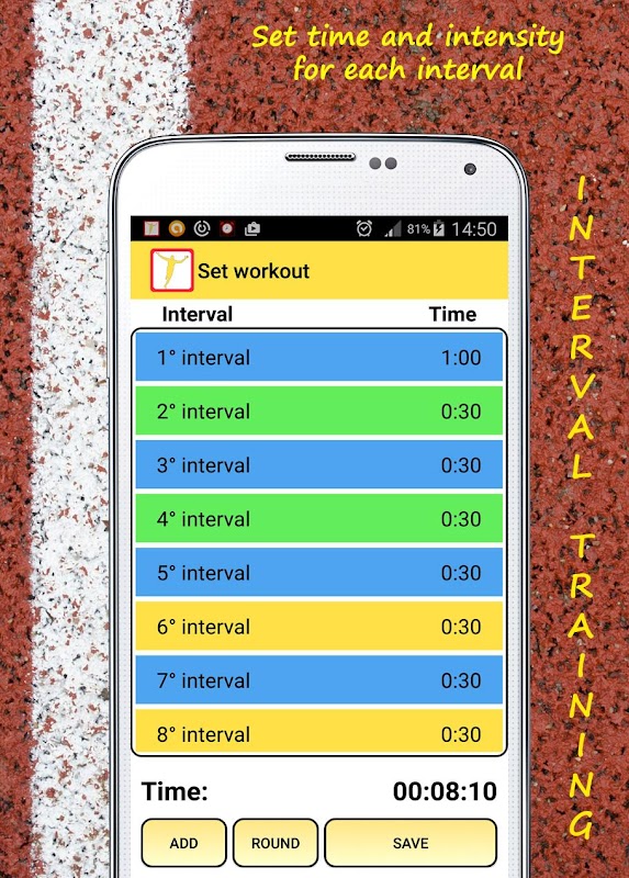 कि उच्च तीव्रता अंतराल धीमी गति से वसूली चरणों के साथ, को जोड़ती है तीव्र वर्कआउट के लिए Android एप्लिकेशन, एक व्यायाम सत्र के दौरान दोहराया।