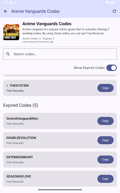 - सक्रिय और समाप्त कोड: देखें कि कौन से कोड अभी भी काम करते हैं और कौन से नहीं