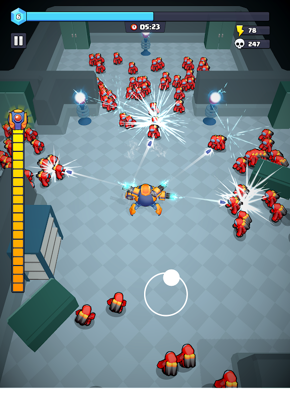 विविध विरोधियों और अद्वितीय यांत्रिकी और हमलों के साथ पौराणिक मालिकों की लहरों के खिलाफ रोमांचक उत्तरजीविता लड़ाइयों में शामिल हों। अपने रोबोट के लिए नई क्षमताओं, हथियारों और मॉड्यूल को अनलॉक करने के लिए पराजित दुश्मनों से गिराए गए अनुभव को इकट्ठा करें, इस शत्रुतापूर्ण वातावरण में अपने अस्तित्व की संभावनाओं को बढ़ाएँ।