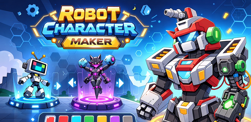 रोबोट कैरेक्टर मेकर के साथ अपने खुद के रोबोट कैरेक्टर बनाएं – रोबोट, अवतार और कैरेक्टर डिज़ाइन पसंद करने वाले सभी लोगों के लिए एक मज़ेदार और रचनात्मक ऐप।