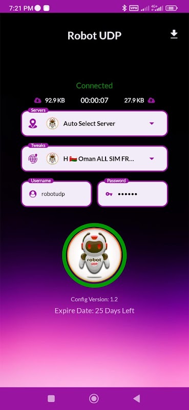 रोबोट यूडीपी बैंडविड्थ एक्सेस (डायरेक्ट कनेक्शन, डायरेक्ट एसएसएल/टीएलएस, एचटीटीपी प्रॉक्सी, एसएसएल/पेलोड, एसएसएल/टीएलई प्रॉक्सी, एसएसएल/ प्रॉक्सी + एचटीटीपी प्रॉक्सी, सर्वर,