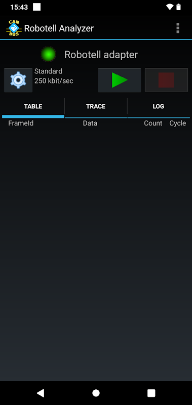 एप्लिकेशन आपको रोबोनेल यूएसबी-कैन एडॉप्टर के माध्यम से कैन बस पर डेटा गतिविधि की निगरानी के लिए अपने मोबाइल डिवाइस का उपयोग करने की अनुमति देता है।