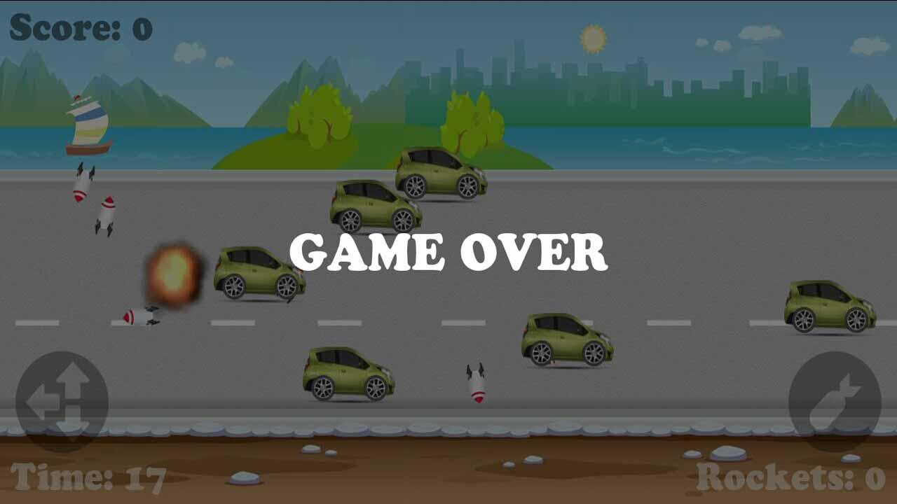 Avoid accidents with other cars and collect rockets. Press the screen to launch a rocket to explode other cars. Don't forget to collect gas for your car.