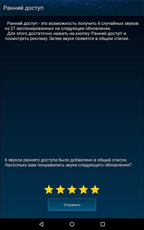 Друзья, я уверен, что вы заметили, что прошлое обновление было примерно тысячелетие назад. И, возможно, вы даже заметили, что приложение немного подвисает при запуске (Ну да, оно вообще не включается). Не бейте палками, мы всё исправили, наверное. Кстати, все звуки которые вы прислали, тщательно собраны и систематизированы для использования согласно этим планам. Это пока что всего лишь багфикс, но мы работаем над большим обновлением.