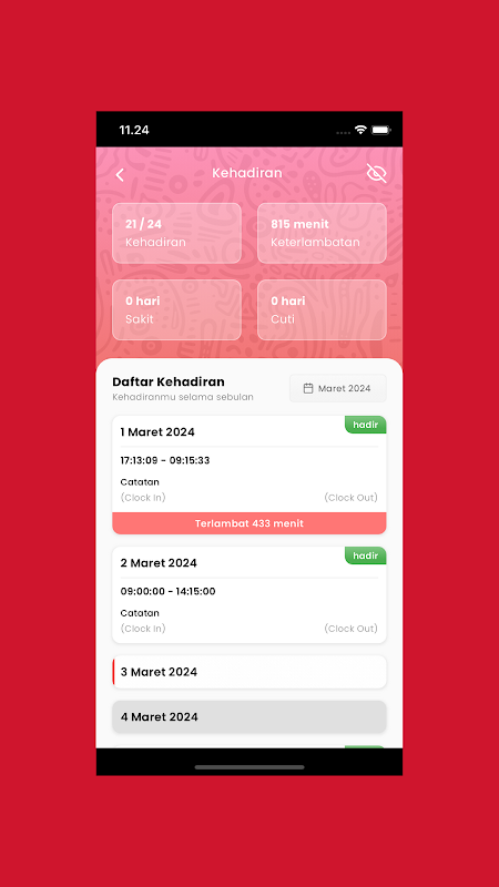 क्लॉक इन और क्लॉक आउट: केवल एक टैप से आसानी से अपनी उपस्थिति दर्ज करें, जिससे आपके काम के घंटों का सटीक रिकॉर्ड मिलता है।