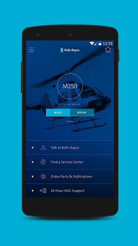 रोल्स रॉयस पहली नेटवर्क आवेदन रोल्स रॉयस प्रबंधकों, अधिकृत सेवा केन्द्रों और दुनिया भर के भागों वितरकों के लिए संपर्क जानकारी के साथ M250 और RR300 रोल्स रॉयस इंजन के मालिकों प्रदान करता है।