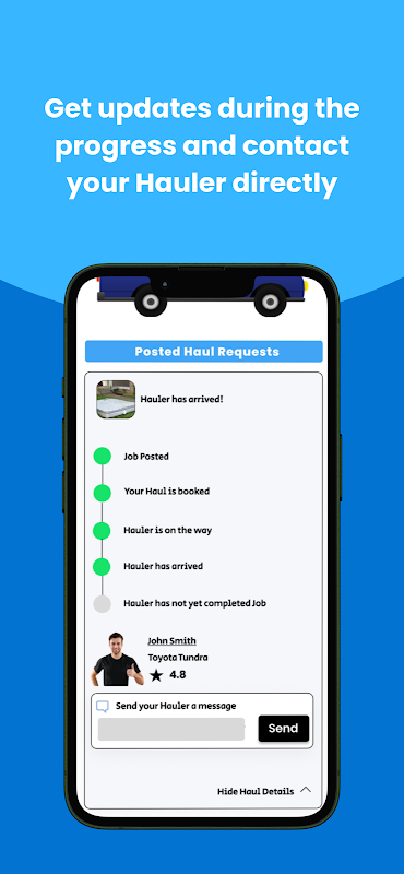 अपने ट्रक को व्यवसाय में बदलें। ऑन-डिमांड हेलर्स के हमारे नेटवर्क से जुड़ें और अपने शेड्यूल पर पैसा कमाएं। कार्य पूरा करने के बाद त्वरित, सुरक्षित भुगतान।