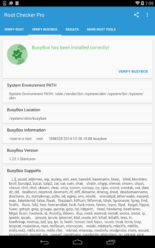 इस एप्लिकेशन को उपयोगकर्ता वे उचित रूट (सुपर उपयोक्ता) का उपयोग और एक उचित बिजीबॉक्स स्थापना है, पुष्टि करने के लिए अनुमति देगा।