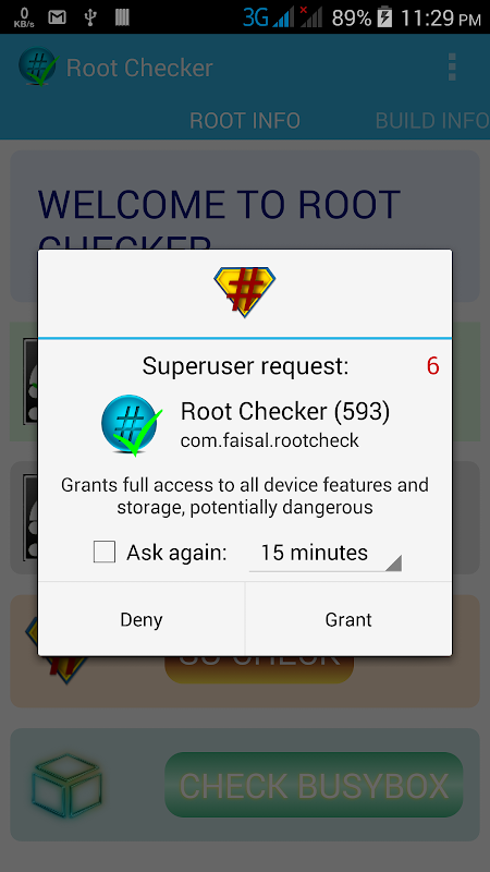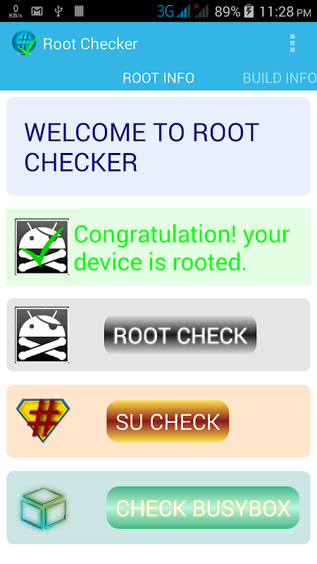 This application is very easy to use, even Android beginners can check their device root access with one simple click.This application simply checks for "SU" binary that is installed on your phone once rooted.