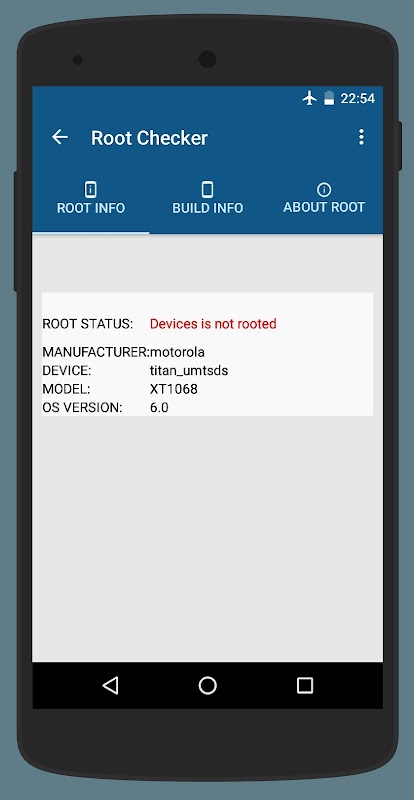 This "Root Checker" app also lets you find out if Busy Box is installed on your android device, it also tells the busy box path. This Root Checker app is free to download and also lets you find out build info for your android device.