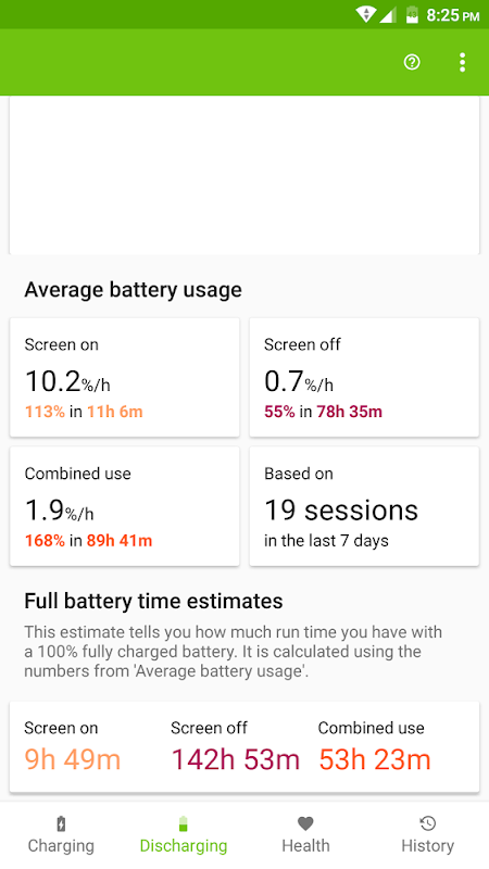 - बैटरी अनुमान (गणितीय) पूर्ण उपयोग के साथ 100% 0% से 4 दिन।