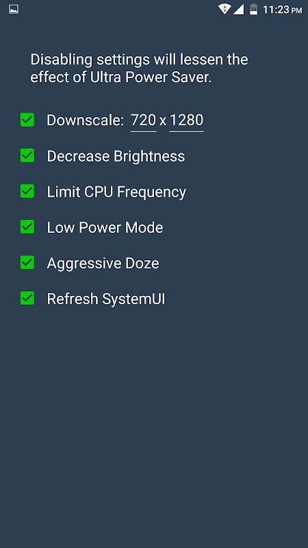 UltraPowerSaver अद्वितीय तरीकों का उपयोग करता CPU शक्ति आवश्यकताओं को कम करने के अपने डिवाइस की बैटरी एक समय में दिनों तक चलना अनुमति देने के लिए। इन सुविधाओं के एक संकल्प downscale, नींद पर एक आक्रामक Doze मोड, साथ ही अन्य सुविधाओं की एक टन शामिल हैं।