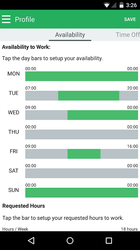 - Set requested hours