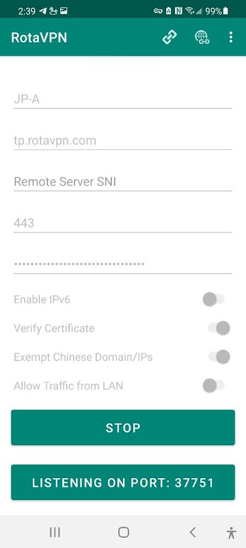 एक वीपीएन क्लाइंट जो ट्रोजन-जीएफडब्ल्यू प्रोटोकॉल और अन्य प्रोटोकॉल का समर्थन करता है।