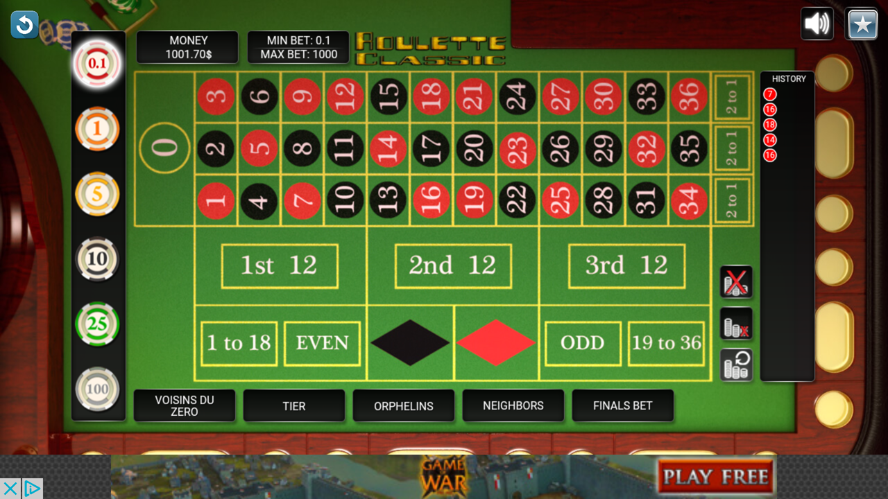 रूले क्लासिक एक सट्टेबाजी का खेल है और आपको बस यह अनुमान लगाना है कि गेंद स्पिन करने के बाद कहाँ गिरेगी।