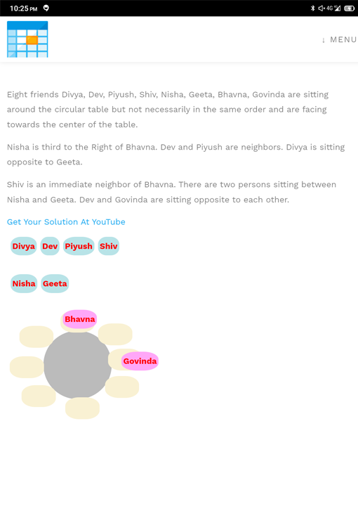 प्रश्न में उल्लिखित लोगों या वस्तुओं को खींचें और उन्हें सही पंक्ति और कॉलम पर छोड़ दें और फिर चेक बटन पर क्लिक करके यह भी देखें कि आप सही हैं या गलत। समस्या को हल करने में लगने वाला समय डिवाइस में सहेजा जाता है और आप उसे देख सकते हैं परिणाम मेनू में जाकर प्रतिस्पर्धी भारतीय रेलवे और भारतीय बैंक परीक्षा में मदद करें।