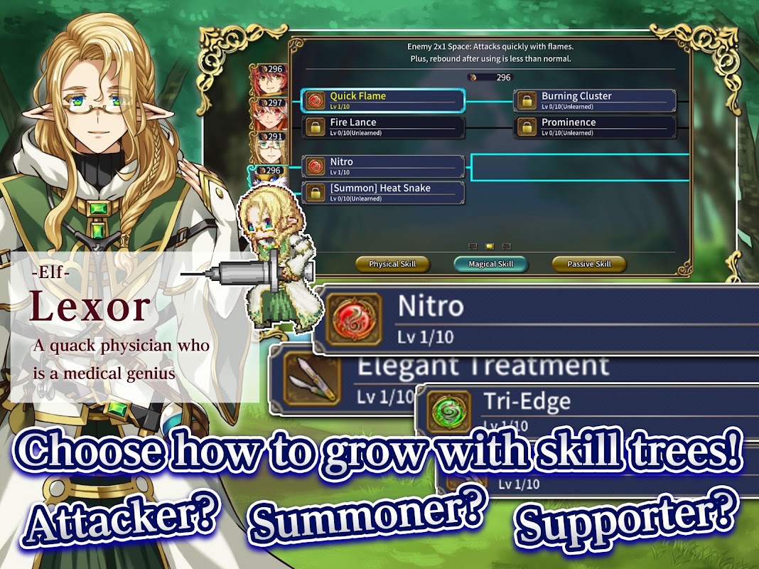 कौशल बिंदुओं को आवंटित करने के लिए कौशल वृक्ष का उपयोग करें और एक ही कौशल या जादू की एक किस्म में महारत हासिल करने पर ध्यान केंद्रित करें। चारों ओर घूमने के लिए बहुत सारे अद्वितीय बॉस और बारी-बारी से लड़ाई में दुश्मनों द्वारा गिराए गए शक्तिशाली उपकरणों के साथ, चुनौतियाँ असीमित हैं।