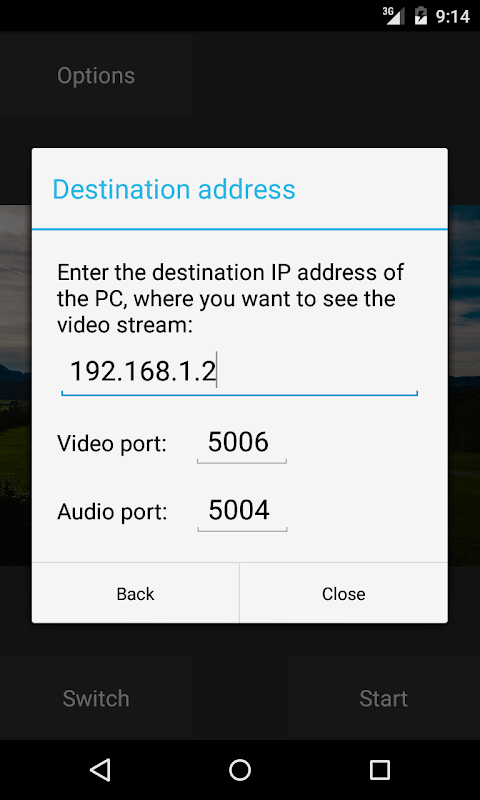 View stream command - ffplay.exe http://(device ip address):8080/camera.sdp