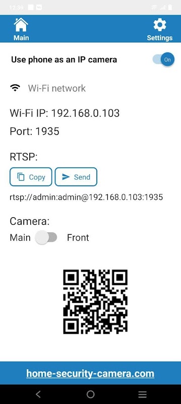 सुरक्षा कैमरा आरटीएसपी प्रोटोकॉल का उपयोग करके आपके फोन कैमरे से वाई-फाई पर वीडियो स्ट्रीम करेगा।