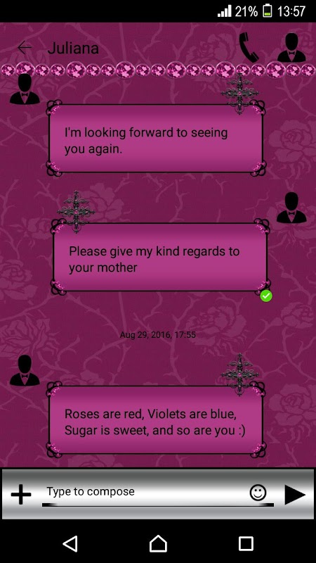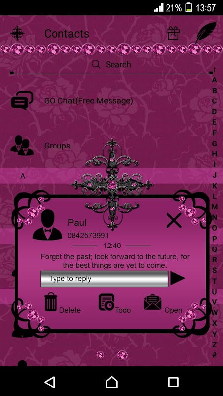 गो एसएमएस प्रो के नए संस्करणों में इस विषय की उपस्थिति स्क्रीनशॉट पर दिखाए गए से भिन्न हो सकती है। इसे वही दिखने के लिए आपको पुराने संस्करण (6.42 या पुराने) को स्थापित करने की आवश्यकता है।