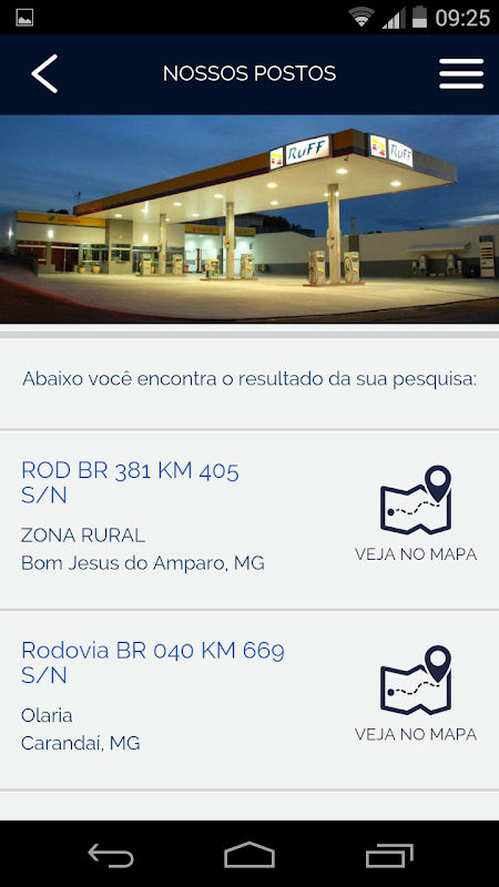 Nossos postos: encontre o endereço do posto Ruff mais próximo de você. Visualize por meio do mapa a localização geográfica do credenciado e sugestões de trajeto, de acordo com o ponto de referência do seu dispositivo móvel.