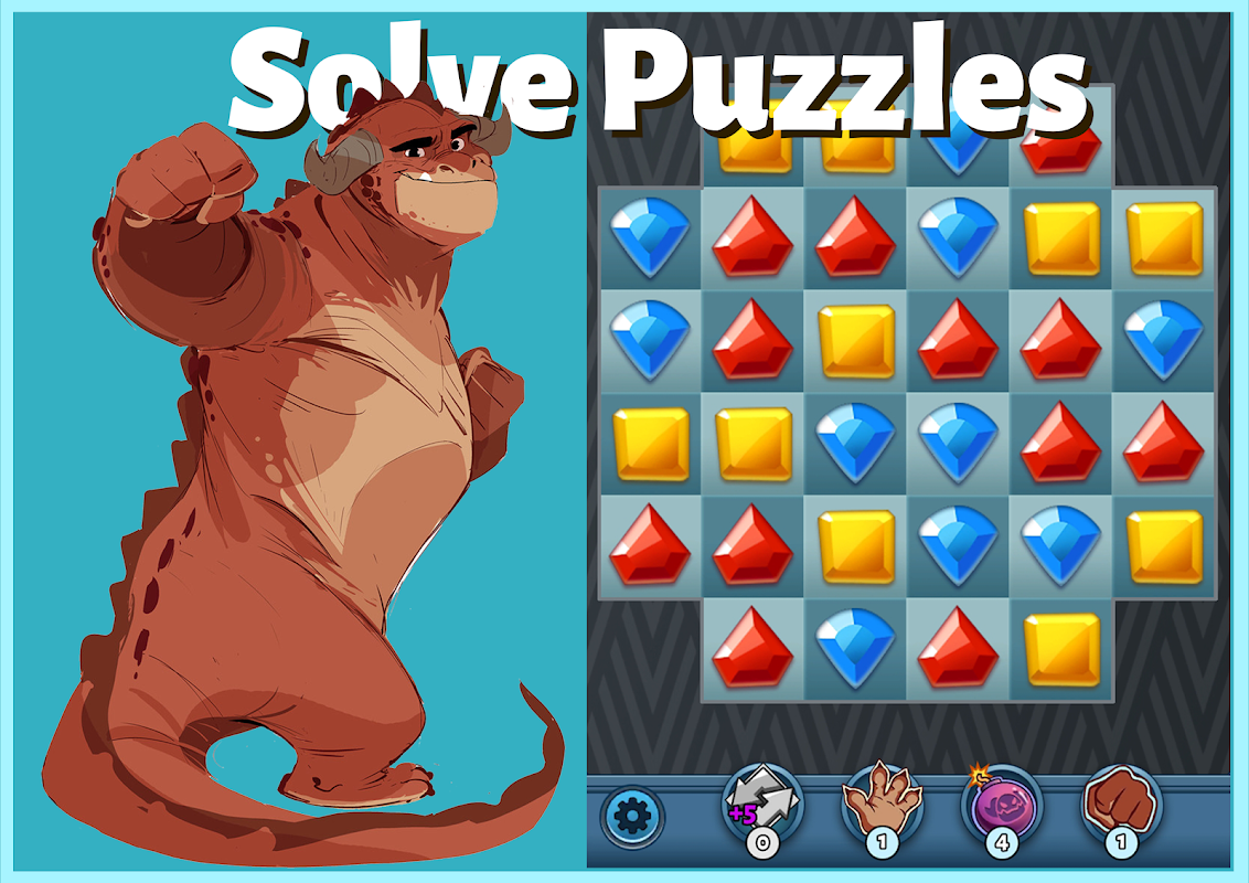 पैरामाउंट मूवी RUMBLE पर आधारित एक मैच3 पज़ल गेम.