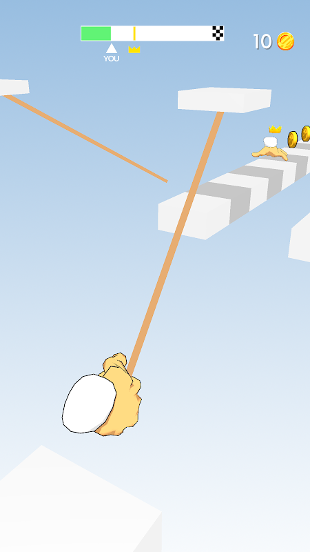 Run with the crazy fingers, push walls, take ropes and avoid obstacles to win the race!