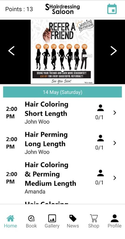 सैलून अपॉइंटमेंट, बुकिंग, सेवाओं और प्रचार घोषणा को बुक करने के लिए उपयोग किया जाता है।