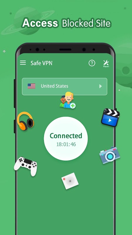 Safe VPN (Free Unlimited Fast Proxy VPN) bring a high speed and encrypted VPN connection to your smartphone or tablet.