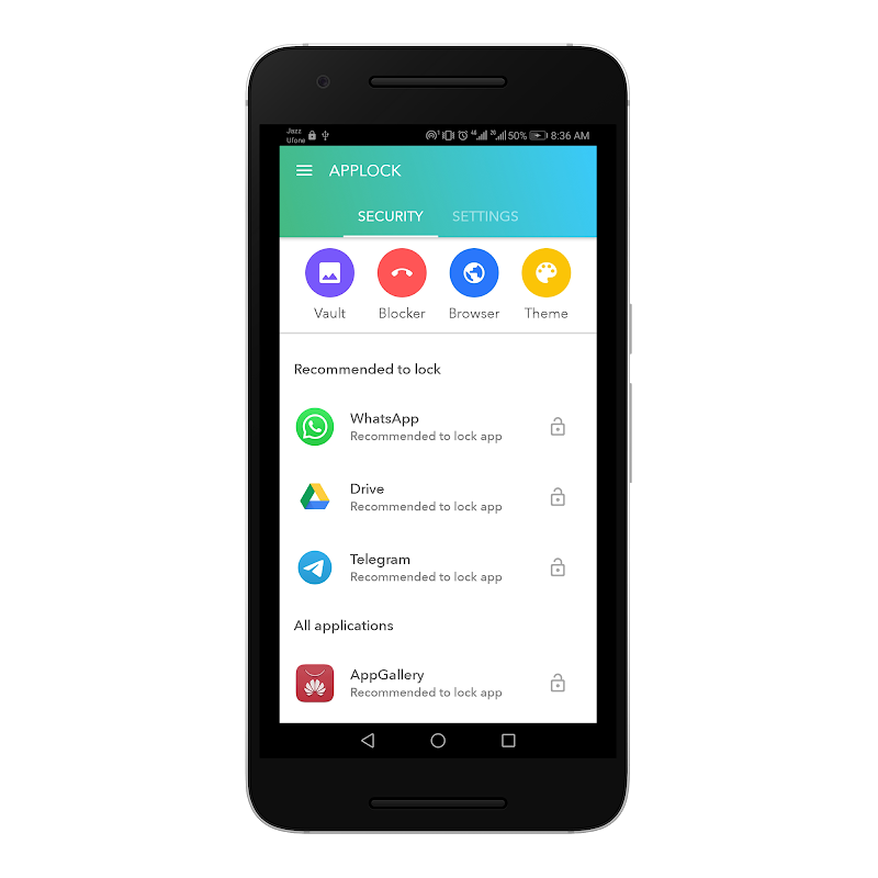 • Lock apps with password, pattern, or fingerprint lock.