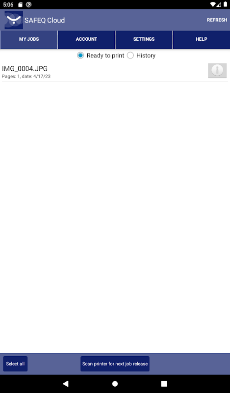 अपने मोबाइल और ड्राइवर रहित प्रिंटिंग के लिए SAFEQ क्लाउड का उपयोग करने वाले शिक्षा और एंटरप्राइज़ ग्राहकों के लिए, इस Android ऐप का उपयोग करें, अपने Android डिवाइस पर आपके द्वारा उपयोग किए जाने वाले एप्लिकेशन के भीतर मूल रूप से प्रिंट करने के लिए।