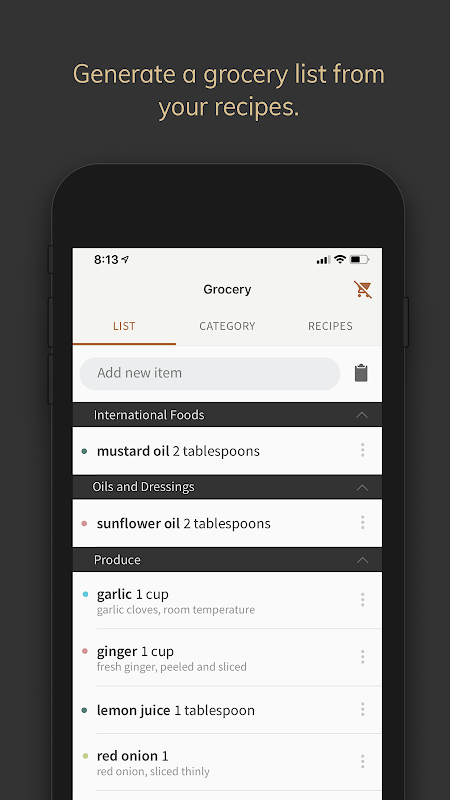 अनुभाग द्वारा आयोजित व्यंजनों के साथ रसोई की किताब भरें।