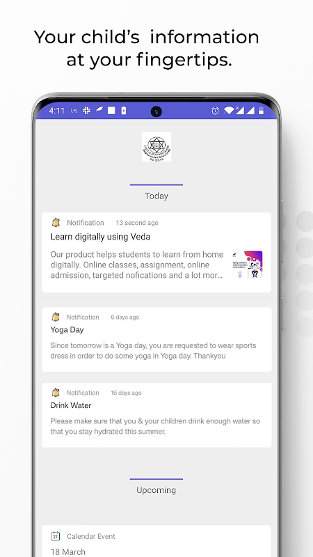 स्कूल/कॉलेज में होने वाली घटनाओं को देखने के लिए समाचार और कार्यक्रम और एक अनुस्मारक भी जोड़ें।