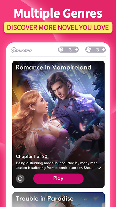 In Samsara, you can fall in love with playboy billionaires, explore a fantasy world with vampires, and be the sea's lost daughter, a mermaid! Now, join us and indulge yourself in our stories, choose different paths, and have fun!