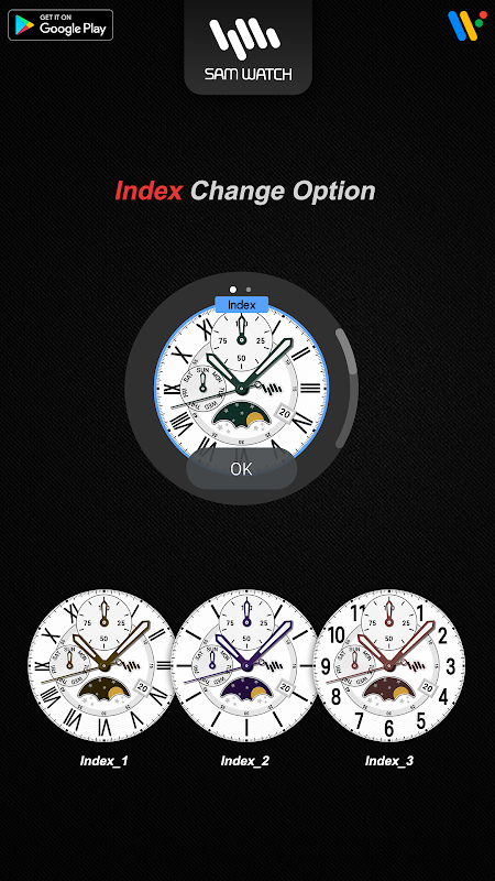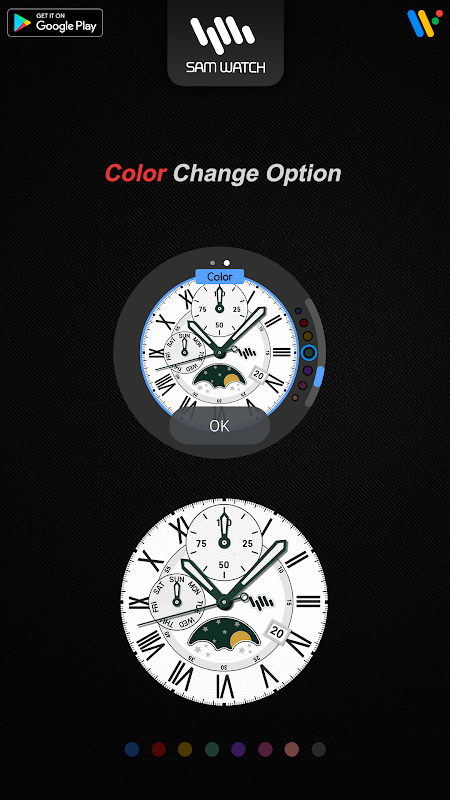 यह वॉच फेस सैमवॉच एनालॉग लाइनअप से मेल खाता है।