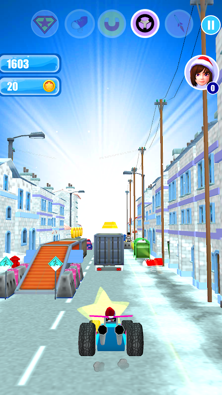 बर्फीले शहरों, छोटे गांवों के माध्यम से भीड़ें, बड़े पुलों पर और आप जो सिक्के खरीद सकते हैं उसे इकट्ठा कर सकते हैं।