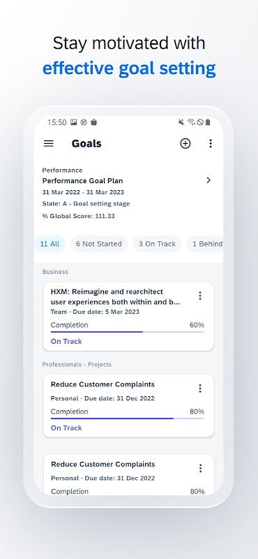 • अपनी सक्रिय लक्ष्य योजनाओं को प्रबंधित करें और अपने लक्ष्य की स्थिति और पूर्णता की दिशा में प्रगति को अपडेट करें।
