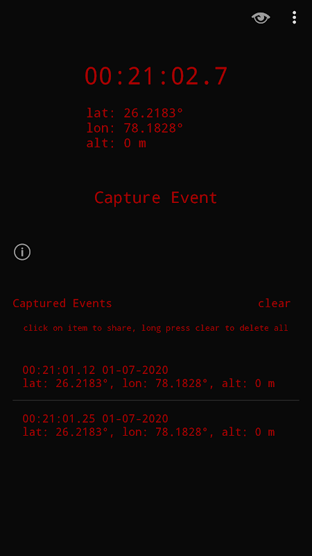 यह एस्ट्रोनॉमी में होने वाली घटनाओं को रिकॉर्ड करने जैसे अनुप्रयोगों में विशेष रूप से उपयोगी है। ऐप में डार्क में उपयोग के लिए एक रात मोड है। और आयोजनों को वॉल्यूम अप और डाउन दोनों बटन के प्रेस द्वारा कैप्चर किया जा सकता है।
