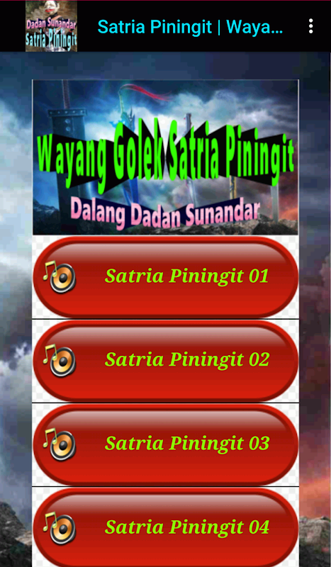 सुलैनी वेनग गोलेक के संग्रह का आनंद लें, जिसका नाटक की दलांग दादान सुनंदर द्वारा प्रस्तुत सतरिया पिंगिंगट ने किया था। कठपुतली का नाटक Satria Piningit, Satria Piningit के उद्भव की कहानी कहता है, एक योद्धा जिसे उसके आगमन का बेसब्री से इंतजार है क्योंकि वह कठपुतली की दुनिया में शांति लाएगा जो आपदाओं के साथ खिलवाड़ कर रही है। सतरिया पिंगिंगट को खोजने में कौन कामयाब रहा? तो सतरिया पिंगिंगिट की उपस्थिति की प्रक्रिया क्या है? वास्तव में सतारिया पिंगिंग कौन है? कठपुतली के पात्र कौन हैं? क्या वास्तव में शांति प्राप्त हो गई है? कृपया इंस्टॉल करें और उत्तर ढूंढें।