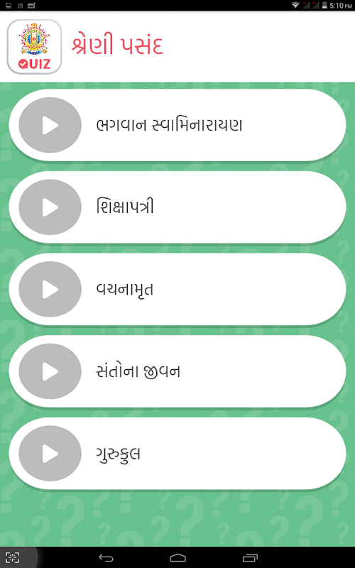 As we've learned from our school days a test of our concepts helps in the application of those and also drives home the significance. In our quest to be Ekantik sometimes the little things can be lost. Satsang quiz is a humble attempt to keep our knowledge of the Sampraday's facts intact. It is a simple quiz that can amaze and satisfy us at the same time. By the blessings and wish of Mahant Swami Shri Devkrushnadasji Swami this application is published to the Google Play on the day of Dushera in the year 2015. We hope that the application will help Satsangis enhance their general knowledge of the Sampraday.